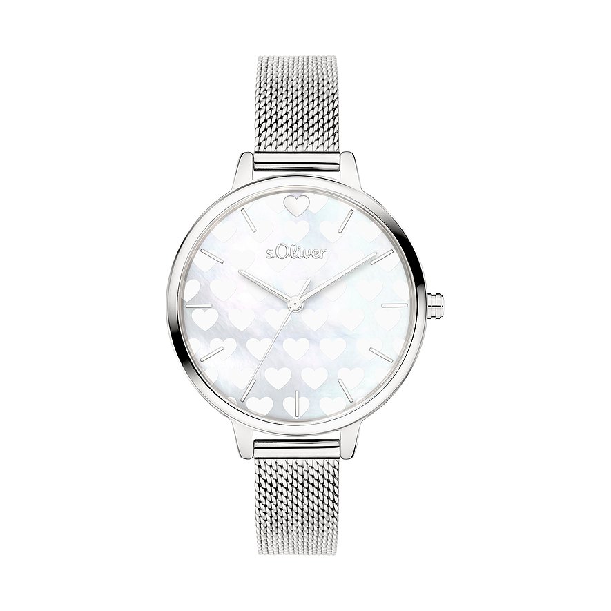 s.Oliver Damklocka mit Perlmutt- und Herzdetails auf dem Zifferblatt SO-4533-MQ